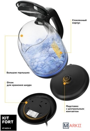 Markit » Электрочайники и термопоты » Электрический чайник Kitfort KT-625-5 (черный/серый)