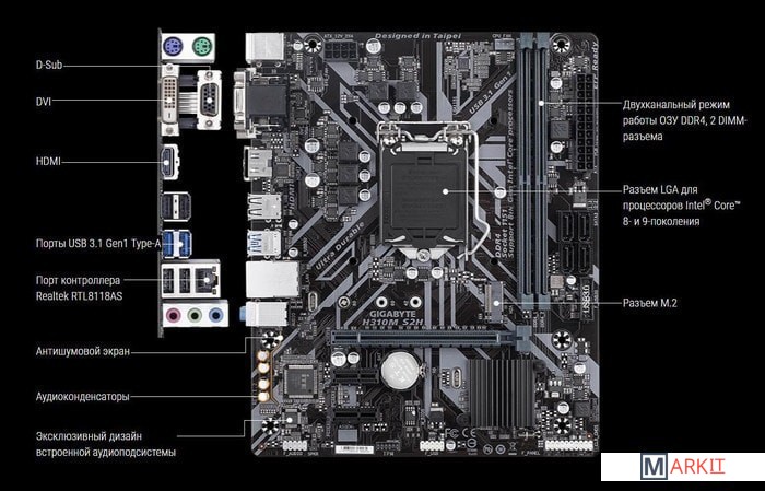 Markit » Материнские платы » Материнская плата Gigabyte H310M S2H (rev. 1.2)