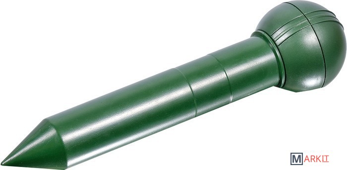 Предназначение: ультразвуковой отпугиватель кротов - современное средство защиты садово-дачного участка от земляных вредителей. Отпугиватель создает звуковые сигналы, которые доставляют дискомфорт кротам и заставляют их покинуть участок. Для максимального эффекта необходимо установить устройство в земле до уровня, рекомендуемого инструкцией производителя. Описание: размер: 7х28 см. Площадь действия до 800 м2. Элемент питания: 2 батарейки R20(D) (в комплект не входят). Звук безопасен для человека и домашних животных, растений и насекомых, присутствие которых в почве необходимо для садовых цветов и овощей. Товар сертифицирова.