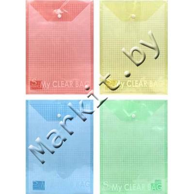 Папка-конверт вертикальная пластиковая на кнопке My Clear Bag, толщина пластика 0,12 мм, прозрачная цветная (ассорти) Код: 32852